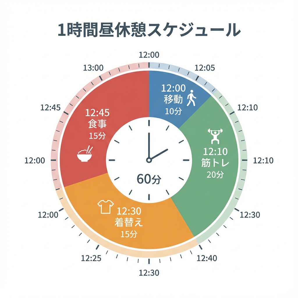 最初はそう思っていましたが、工夫次第で意外となんとかなるものです。今回は、私が実践している「実質20分の昼ジム・トレーニング術」を包み隠さず公開します。同じように時間に追われている方のヒントになれば嬉しいです。